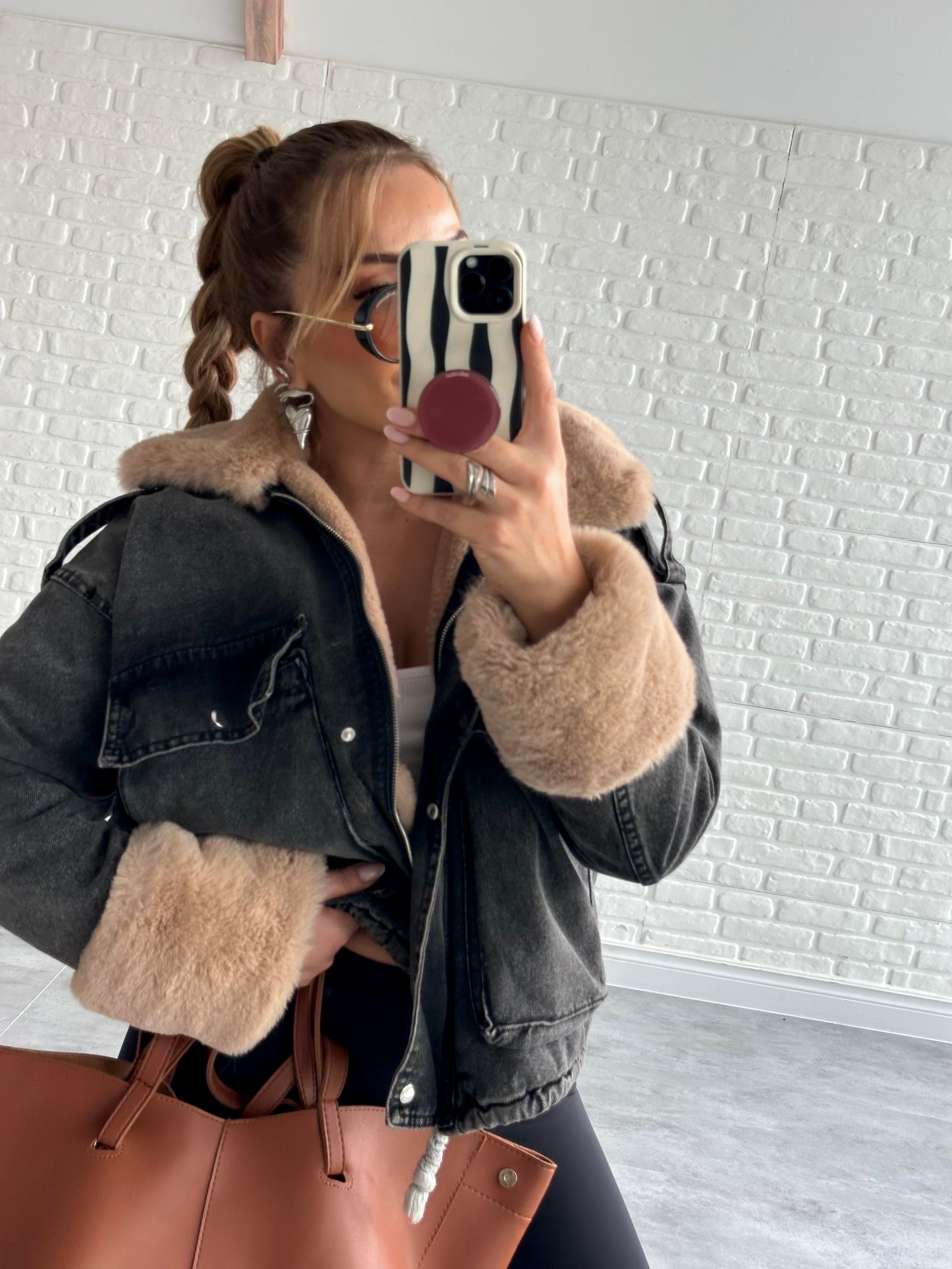 Antrasit Bej Kürklü Mont