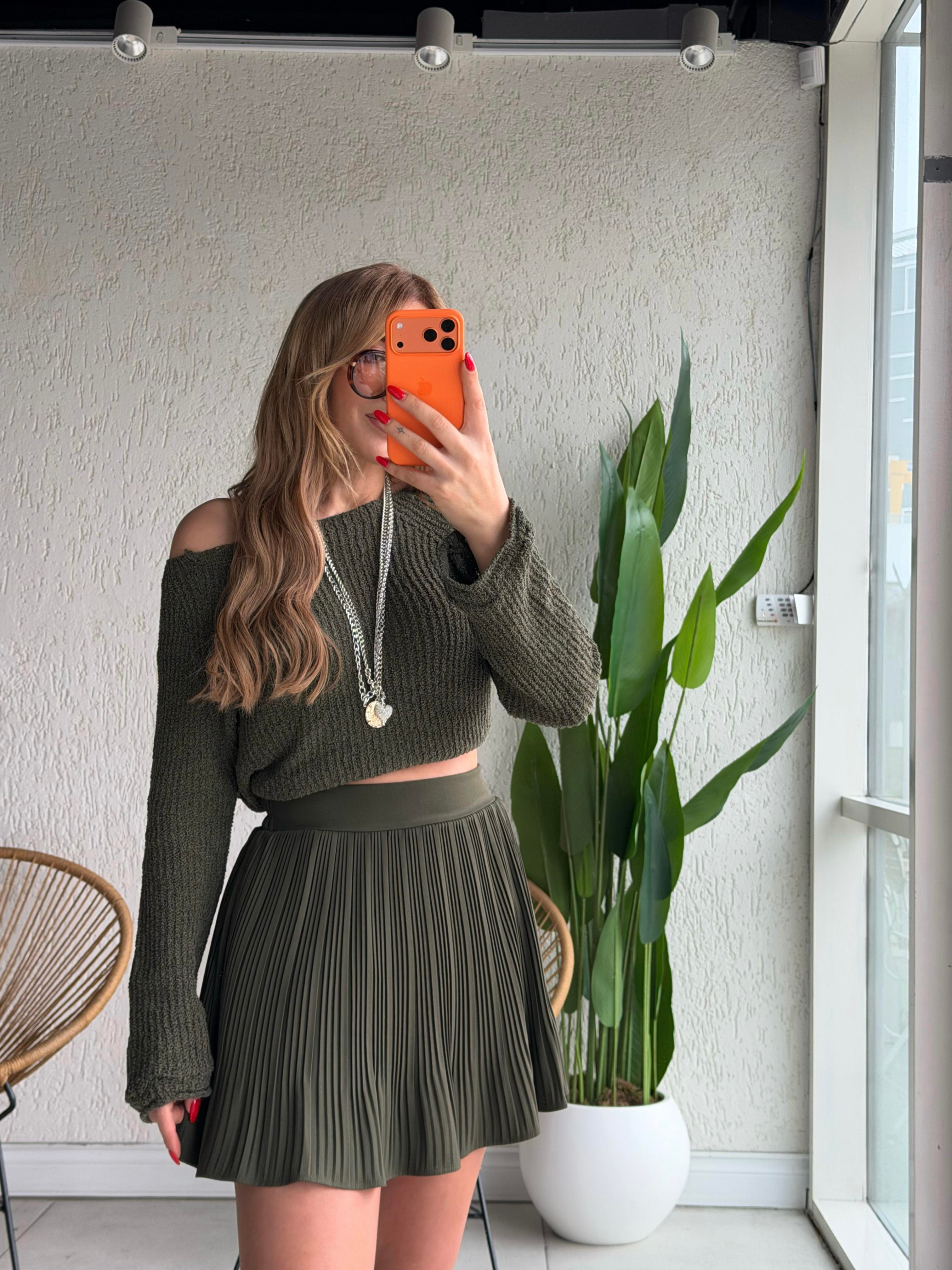 Haki Piliseli Şort Etek
