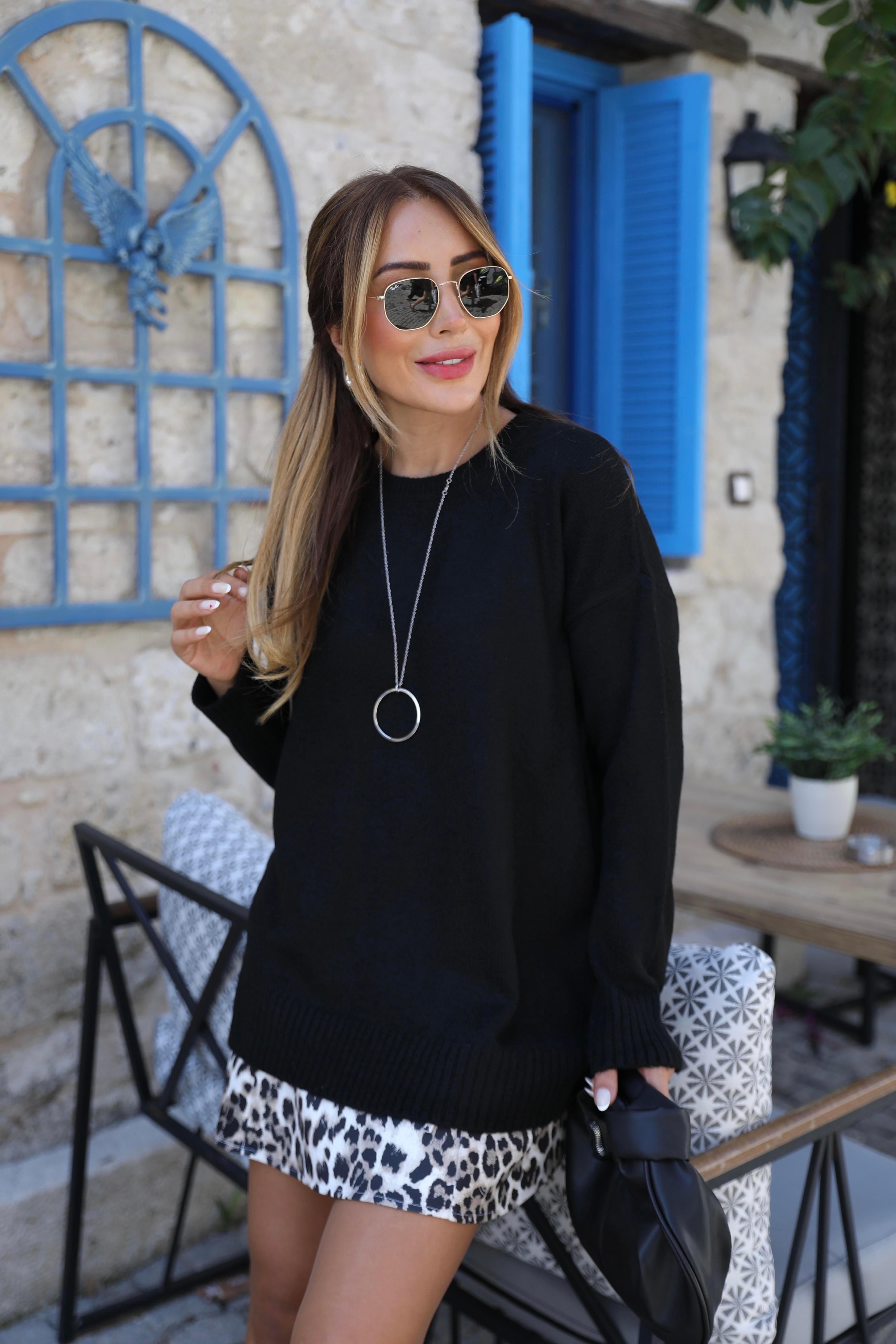 Siyah Bisiklet Yaka Yumoş Kazak